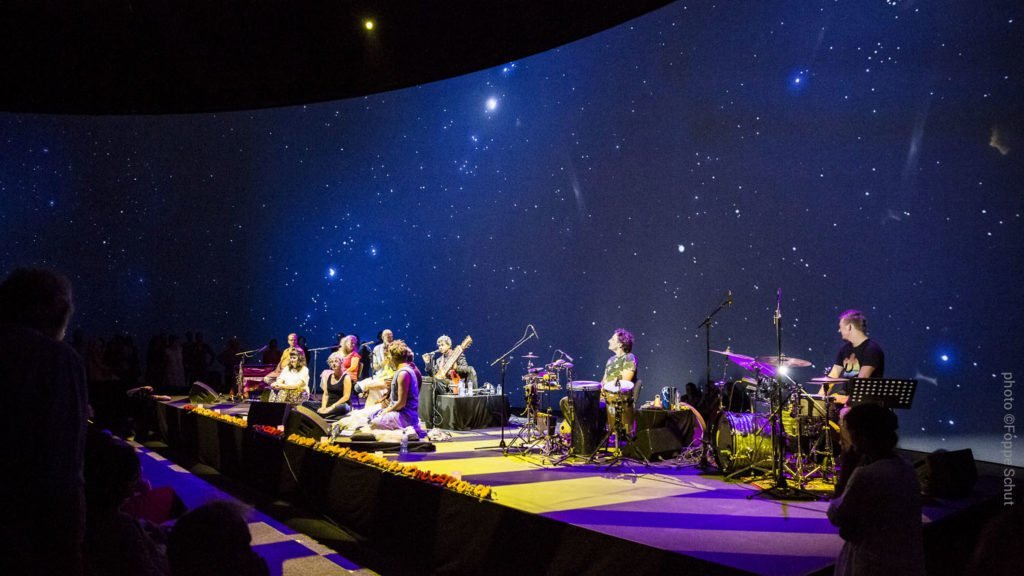 Dat was toen en eenmalig. Altijd open voor andere en nieuwe ervaringen, kiezen we dit jaar voor een bescheidener en meer intieme setting. 'De Duif' is een voormalige, door Stadsherstel prachtig gerestaureerde, barokke kerk. Voor Russill, die als twintiger Benedictijner monnik werd in een Indiase Ashram, is het zingen van mantra's in een christelijke kerk geheel in lijn met waar hij zich zijn leven lang voor inzet: de ontmoeting tussen oosterse en westerse tradities.